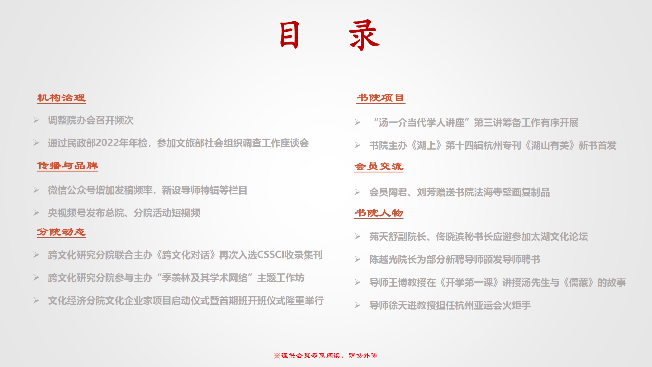 2023年11月10日,会员部发布9、10月份《中国文化书院双月工作简报》,就书院在今年9、10月份开展的重点工作进行通报。
