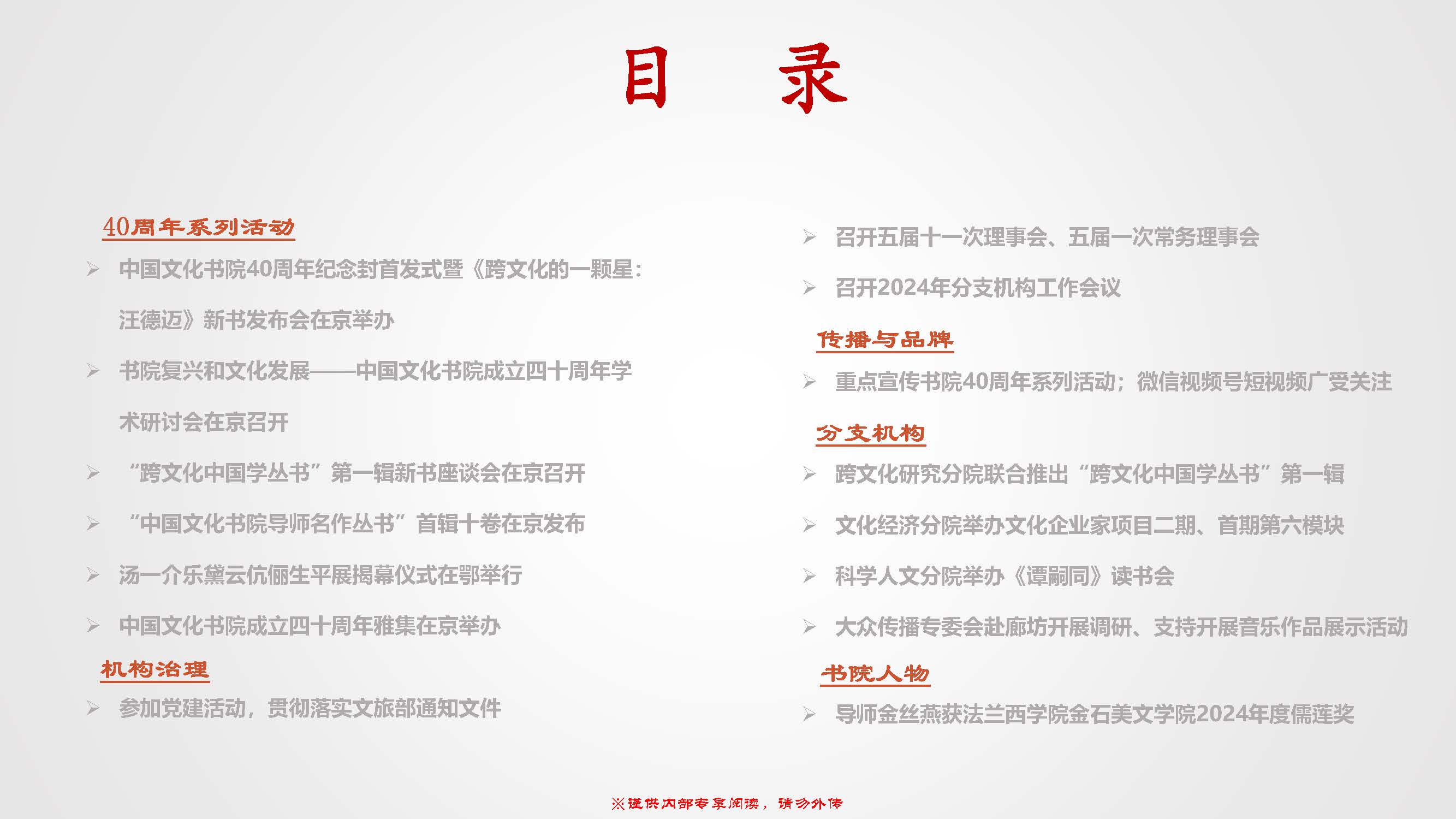 会员部发布2024年9、10月份《中国文化书院双月工作简报》:就书院在2024年9、10月份开展的重点工作进行通报。