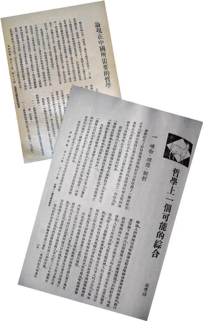 张岱年先生在报刊上发表的《哲学上一个可能的综合》、《论现在中国所需要的哲学》