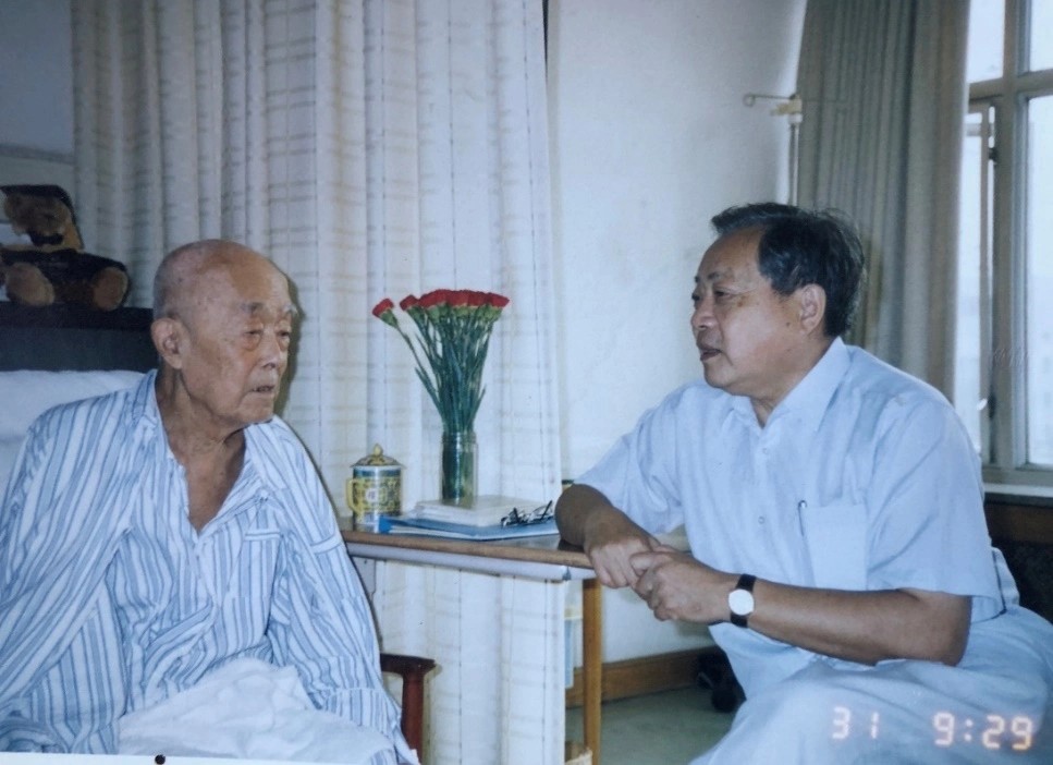 范总自第一次见面之后很久没有见到季老,也没有读到他的文章,十分惦念。他给季老写了封信,也一直没有收到回音,放心不下,给我打来电话询问。进入2002年,季老连续病了几场,动了一次大手术,已入住到301医院。2003年8月的一天,季老身边工作的李老师给我来电说,两个月前季老曾给范总写了封信,尚未发出,这几天常常提到他,“8月6日是季老93岁生日,北大和清华的校领导再三要求过来,能否请范总也来一下。”