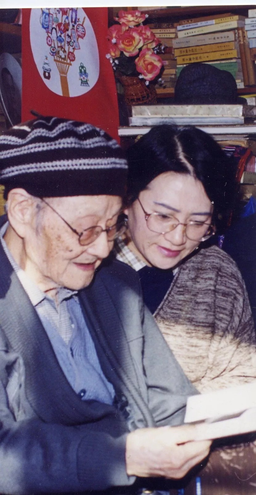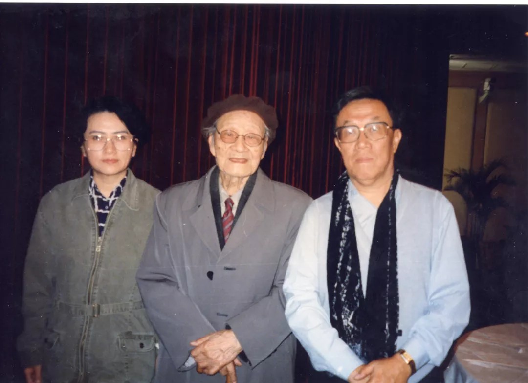 在全国政协礼堂陪钟敬文先生开会(右起:王蒙、钟敬文、董晓萍,1996)