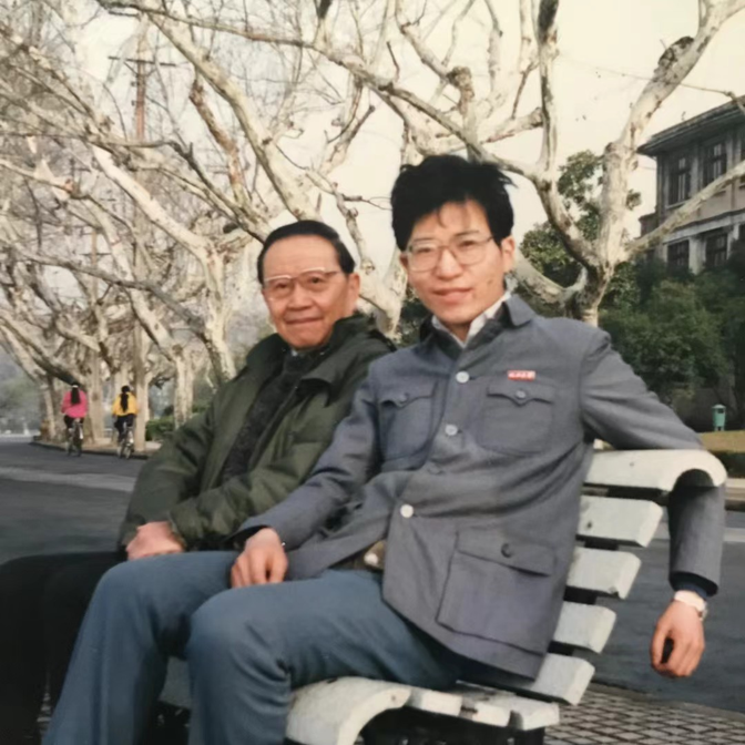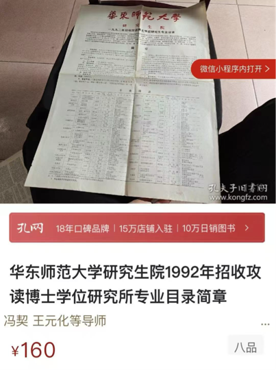 这是1992年我入学之前元化先生来杭州时的合影——那个时候我的头发很多。当年的招生简章现在变成文物了,这张的标价160元,卖点就是冯契先生和王元化先生。