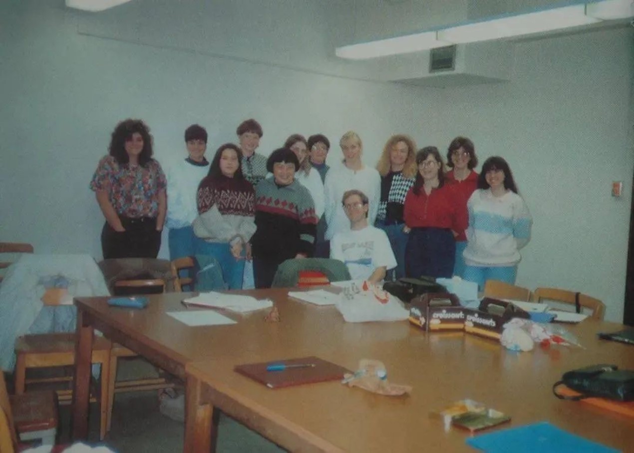 1990年,乐黛云(左五)在加拿大麦克马斯特大学讲学。图源:北京大学官方网站