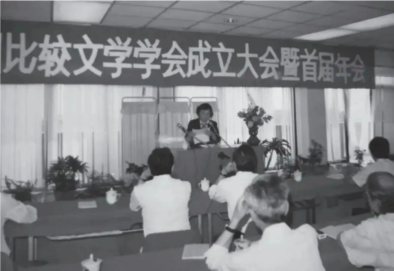 1985年,乐黛云在中国比较文学学会成立大会上发言。图源:北京大学官方网站