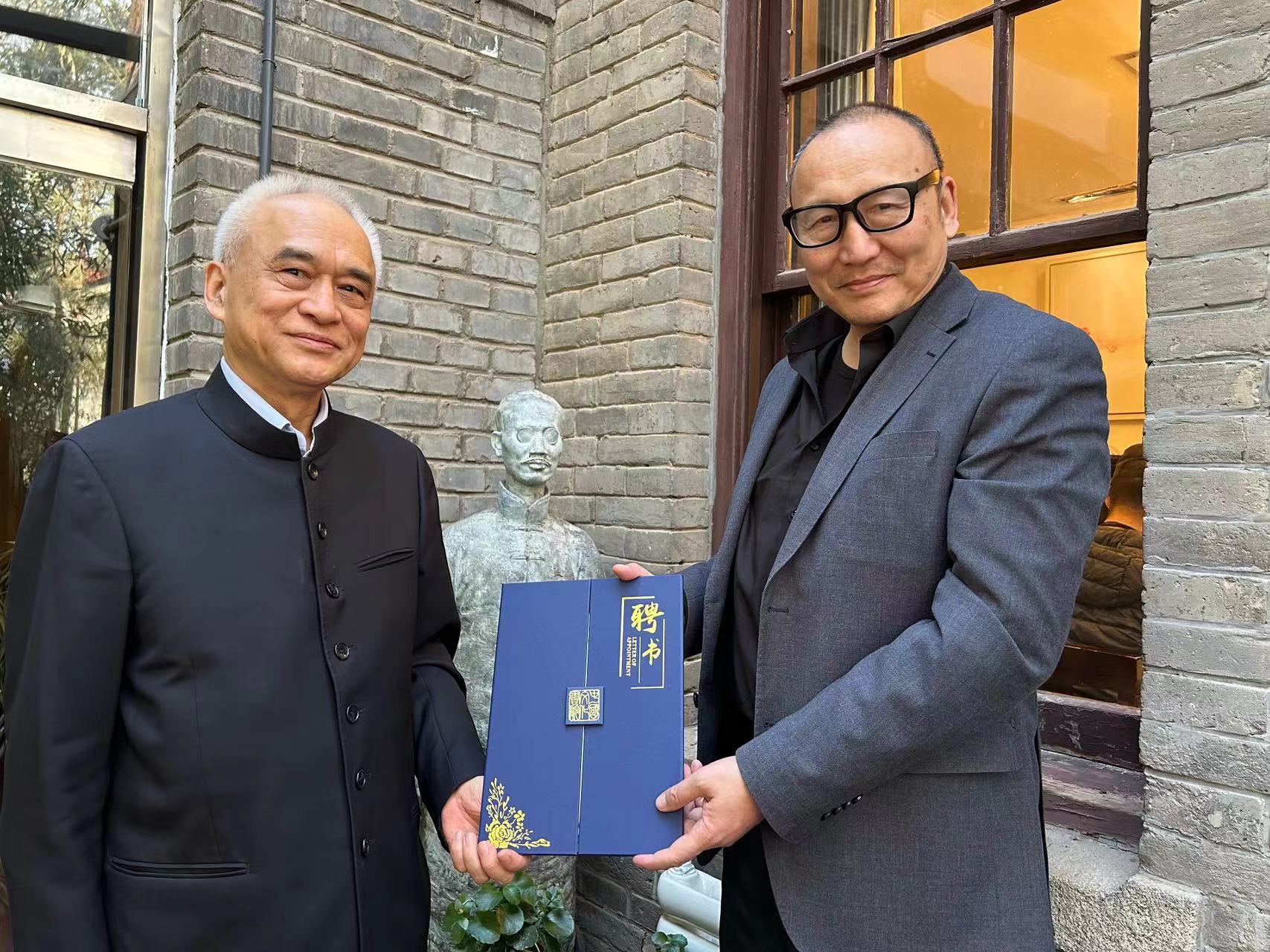 图1:中国文化书院陈越光院长(左)为朱青生教授(右)颁发导师聘书