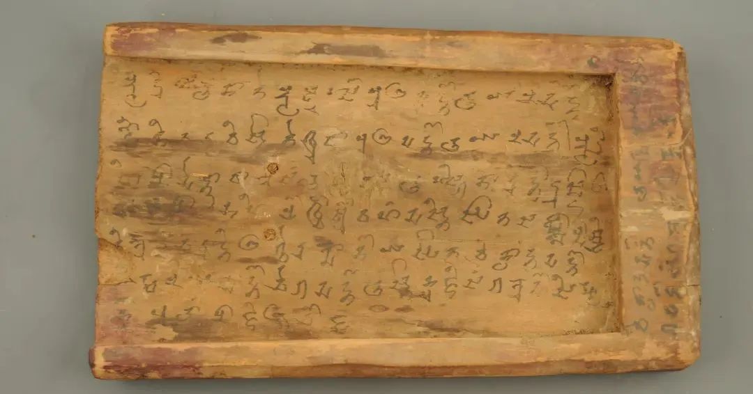 《于阗语大案牍——新疆维吾尔自治区博物馆藏初唐案牍研究》刊布的木匣较一般案牍要大,故称之为“大案牍”。案牍内容实际上包含了两件契约。封牍内底层的文字是于阗王Vijinta Sinhä(伏阇信)第38年拔伽盼福里购买女子泉儿的契约。后来这件文书被涂抹掉,上面重新写另一契约,但涂抹的不够彻底,所以底层的文字还大致可以看出。后写的案牍是于阗王Viśya Saṃgrrāmä(伏阇雄)第12年福清购买女子炫彩及其子阿尤勒的契约。