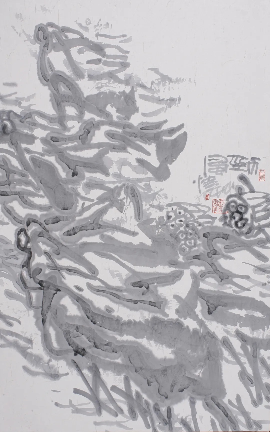 我的作品走的是大写意水墨这样的一个风格路子,之所以这样选择跟两个方面的因素有关:一是跟我自己对于传统中国画笔墨的演进路线和过程的理解有关;另外一个就是跟当代中国画的欣赏和展呈形式的改变有关。