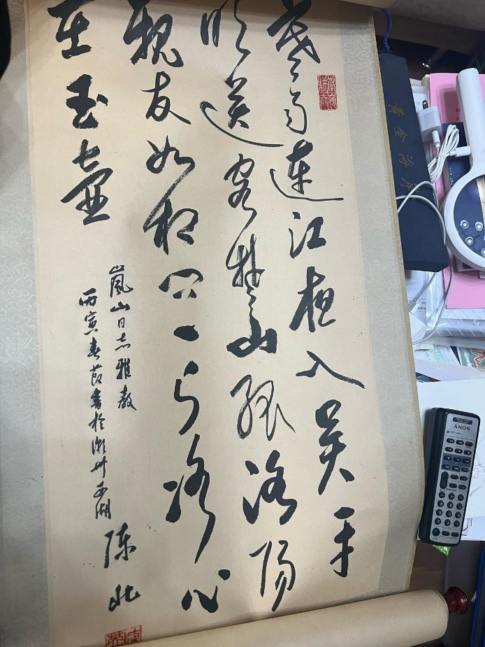 亲情、乡土、学问,在陈平原、夏晓虹的书房有着真切体现和完美交汇。陈平原最先隆重介绍的是父亲陈北早年写给夏晓虹父亲刘岚山的“寒雨连江夜入吴,平明送客楚山孤。洛阳亲友如相问,一片冰心在玉壶”,他父亲笔下的王昌龄诗作,笔力遒劲,洒脱飘逸。