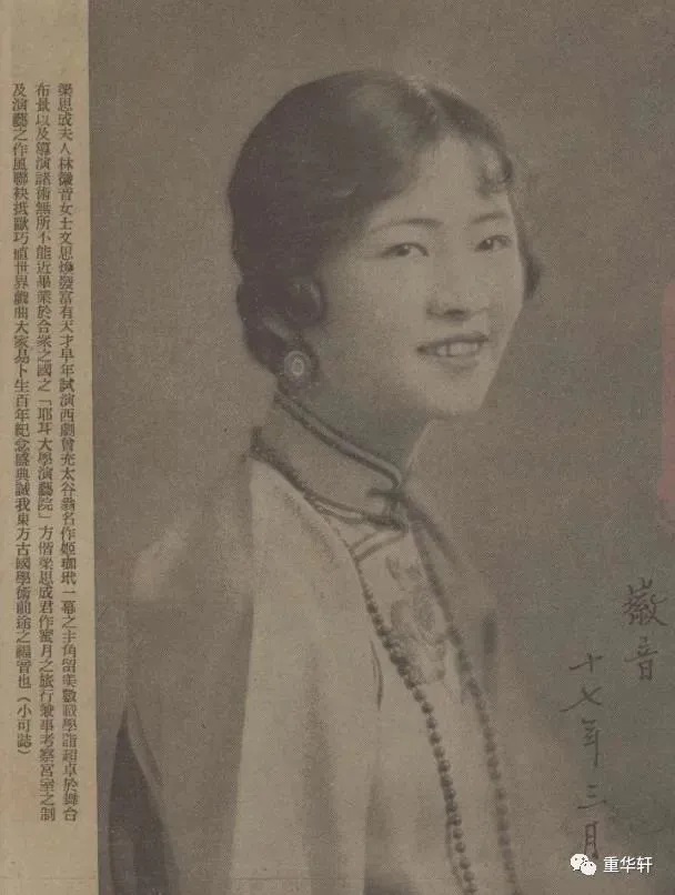 1928年3月,林徽因签名照 (刊于《图画时报》1928 年第460期封面)