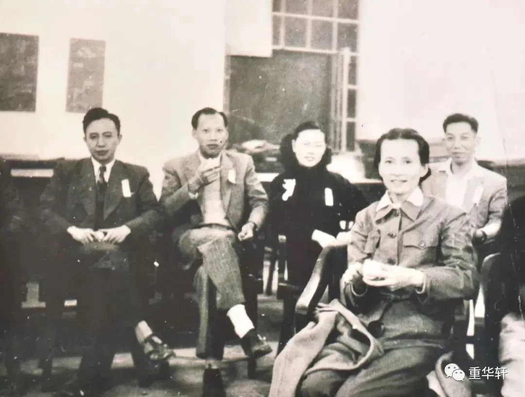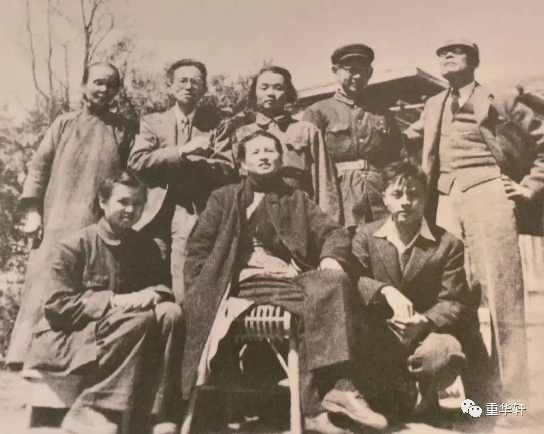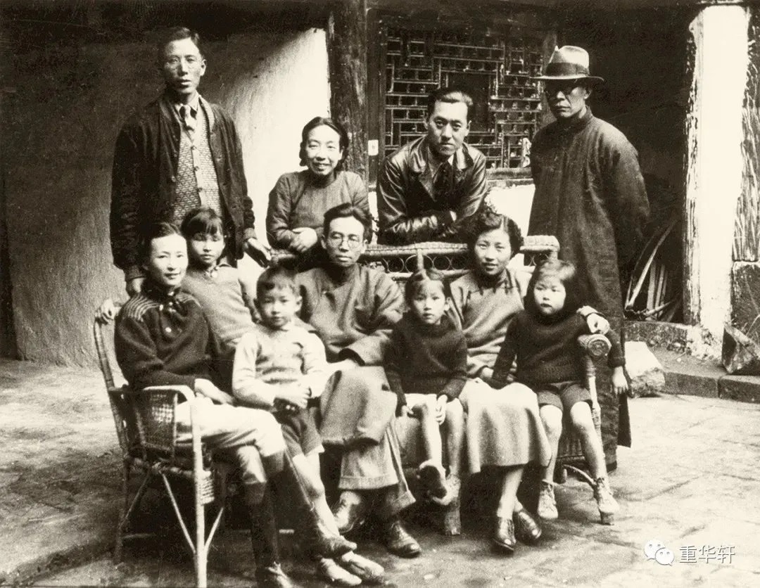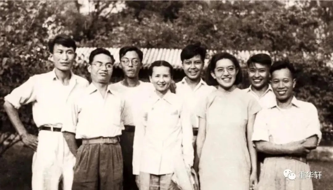 1949年,梁思成(后排左二)、林徽因(前排中)送梁再冰(前排左一)参军前的合影,后排右一是金岳霖