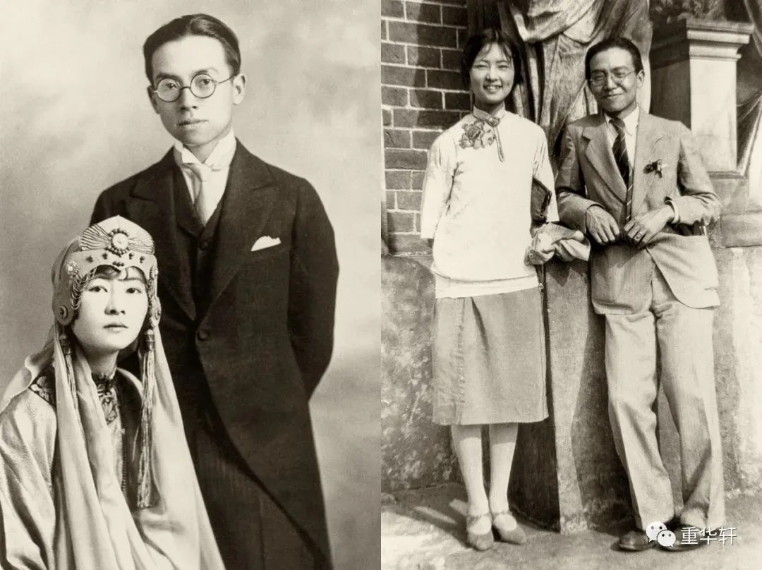 (左)1928年3月 林徽因身着自制礼服与梁思成在加拿大渥太华结婚(右)1928年婚后 梁林二人取道欧洲考察建筑,此照摄于意大利罗马