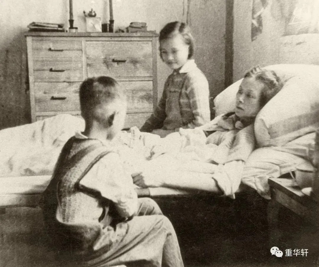 1941年,林徽因在四川李庄的家中卧病在床 与女儿梁再冰、儿子梁从诫在一起