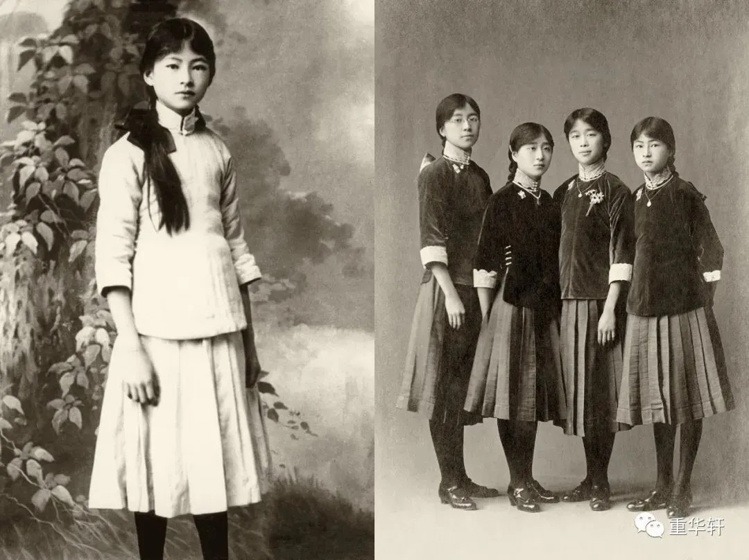 (右)1916年,林徽因与表姐妹在北京培华女子中学学习期间身着校服合影(左起:王孟瑜、王次亮、曾语儿、林徽因)