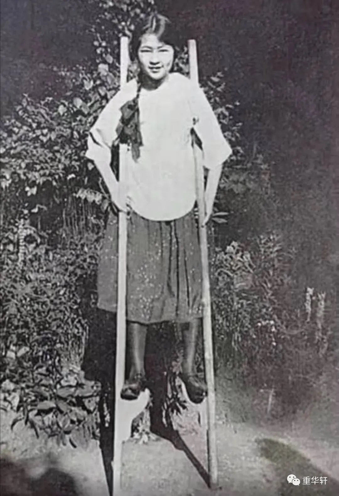 16岁的林徽因在英国房东院中踩高跷,透着顽皮