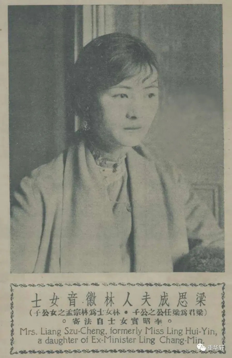 1928年,林徽因身着自己设计的结婚礼服照( 刊于《晨报星期画报》 1928 年第3卷第133期封面)