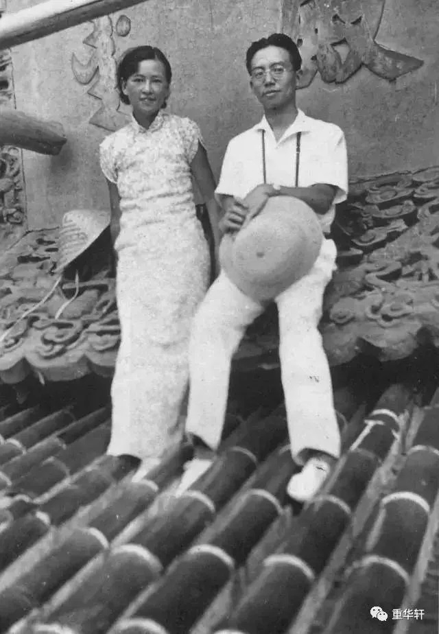 1935年,梁思成、林徽因在天坛祈年殿屋顶