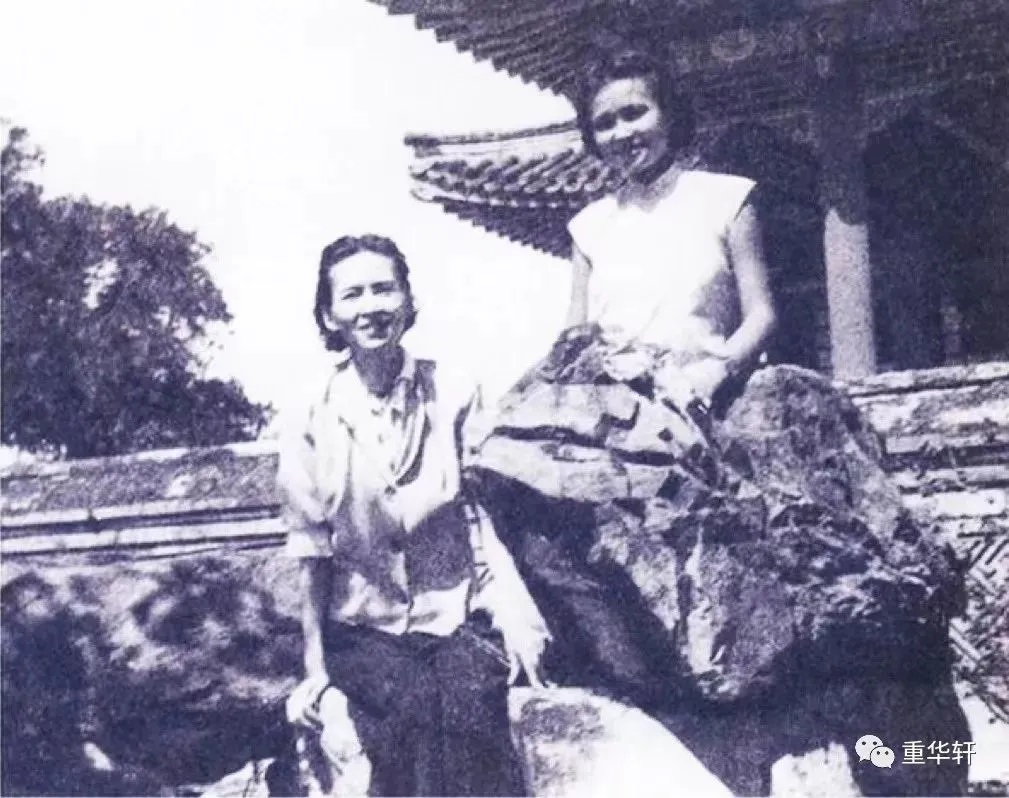 1947年,林徽因与女儿梁再冰于北京颐和园