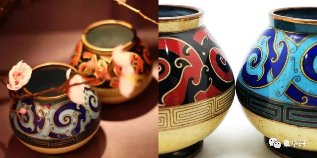 林徽因设计 景泰蓝夔龙纹对罐