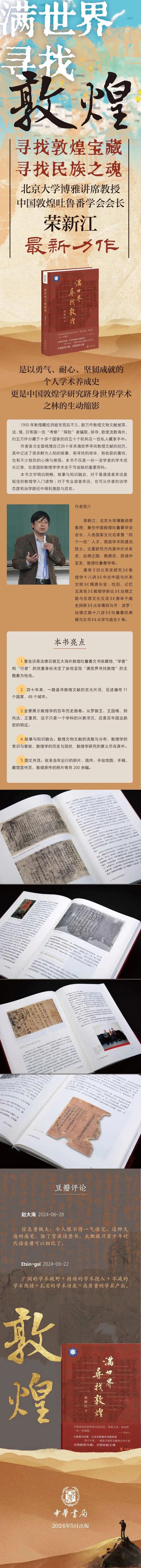 编者按:近日,中国文化书院导师、北京大学博雅讲席教授荣新江著作《满世界寻找敦煌》先后荣获“2024年度中国好书”、“文津图书奖”等大奖。“2024年度中国好书”是在中宣部指导下,由中国图书评论学会组织评选的奖项。文津图书奖由中国国家图书馆联合全国图书馆界、学术界、媒体界共同组织,是国家级综合性图书奖项之一。《满世界寻找敦煌》由中华书局出版,回顾了荣新江教授从1984年起到世界各地寻访稀见敦煌文献的亲身经历。