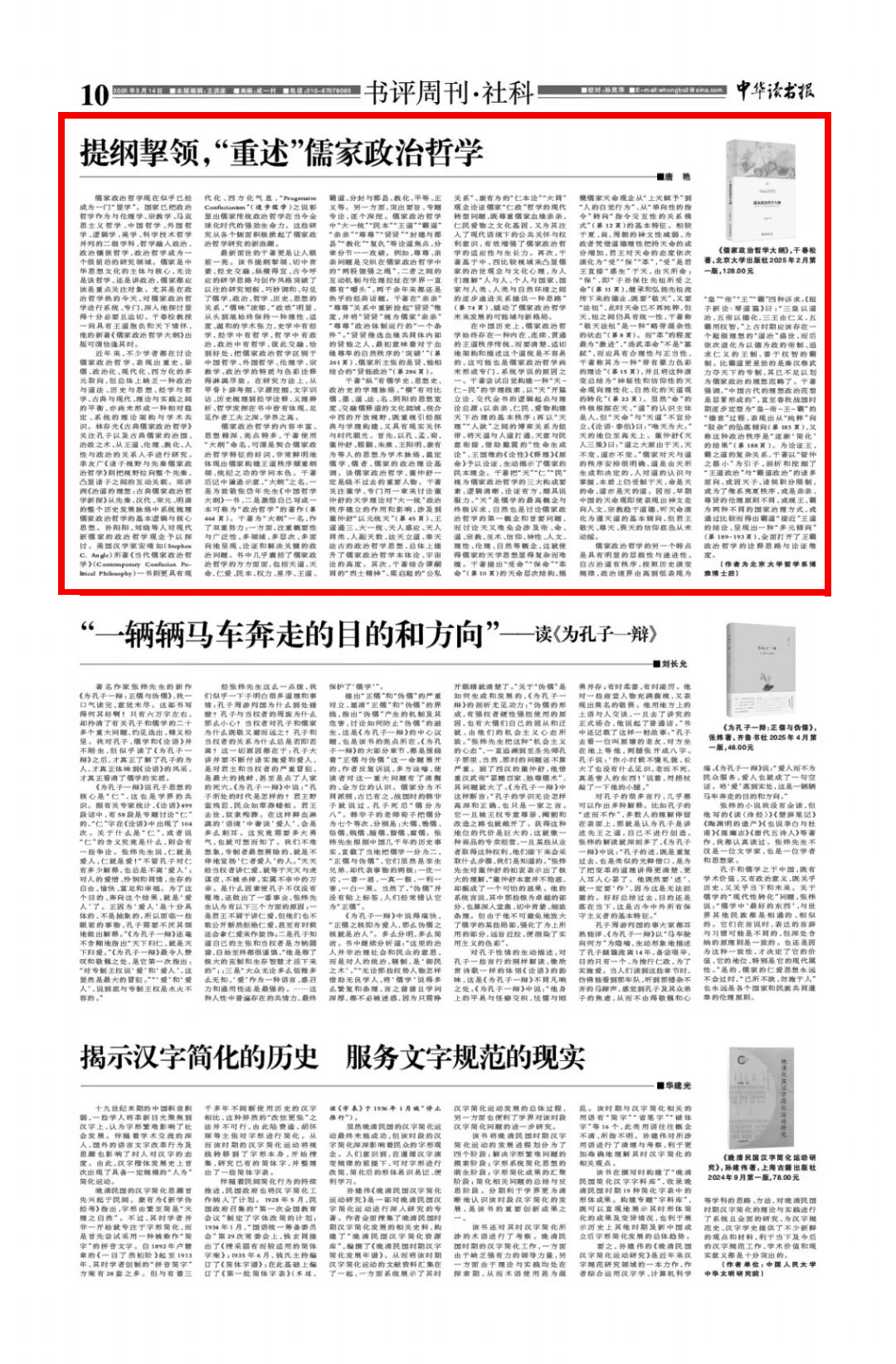 今日特别转载刊登于《中华读书报》的专题文章《提纲挈领,“重述”儒家政治哲学》。该文对《儒家政治哲学大纲》一书从理论框架、研究方法等多角度做了详细的分析和阐述,相信对读者更好地了解这本著作有所帮助。