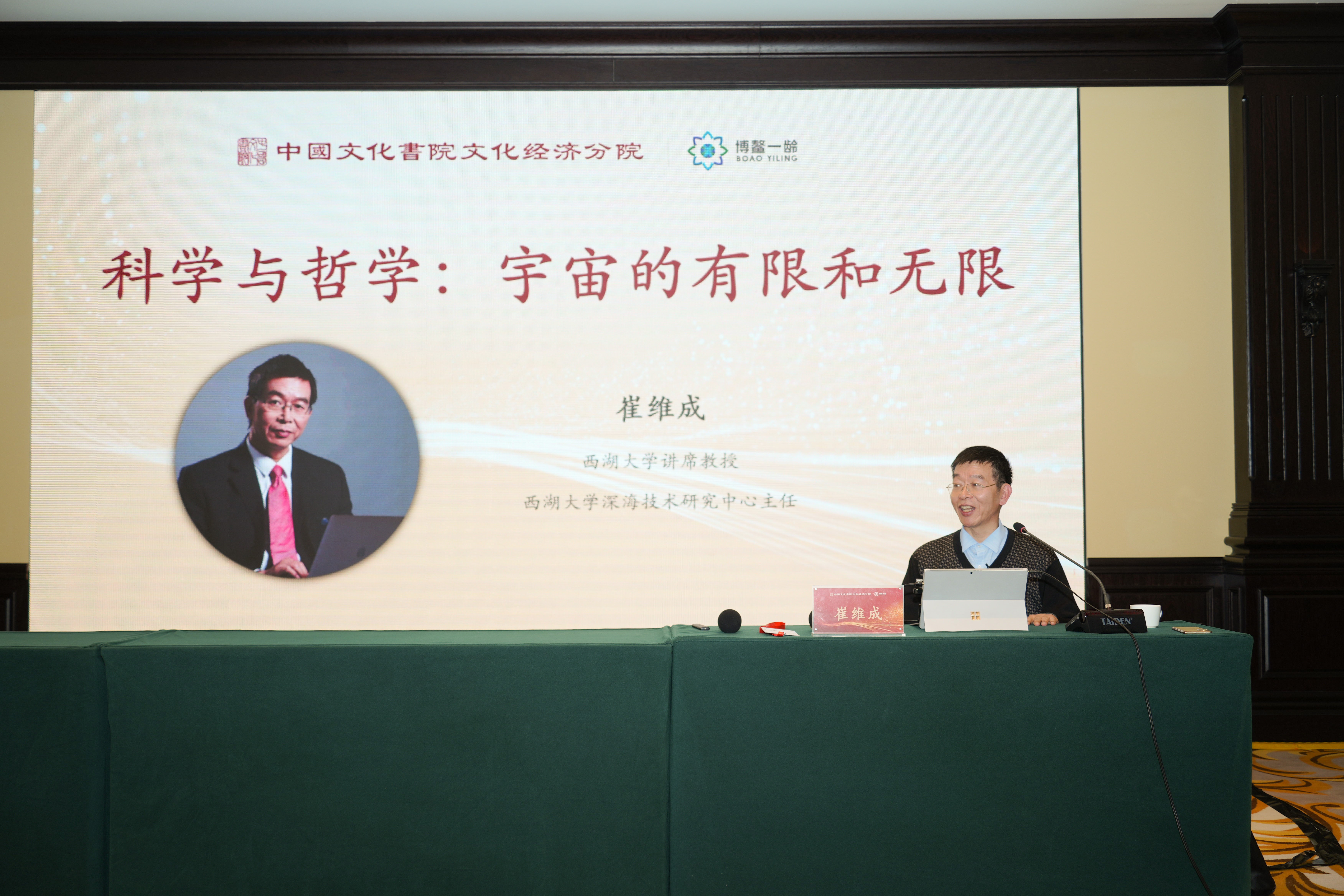 西湖大学讲席教授、深海技术研究中心主任崔维成带来《科学与哲学:宇宙的有限与无限》的讲解,系统地探讨了科学、宇宙与人生。崔维成教授介绍了其所在实验室情况及深海技术的科学发展,并强调技术需与哲学伦理结合,主张以哲学思辨引导人生。最后,崔维成教授与企业家成员们就相关问题进行交流。这场跨领域对话为科技伦理建设与商业文明发展提供了新的思考维度。