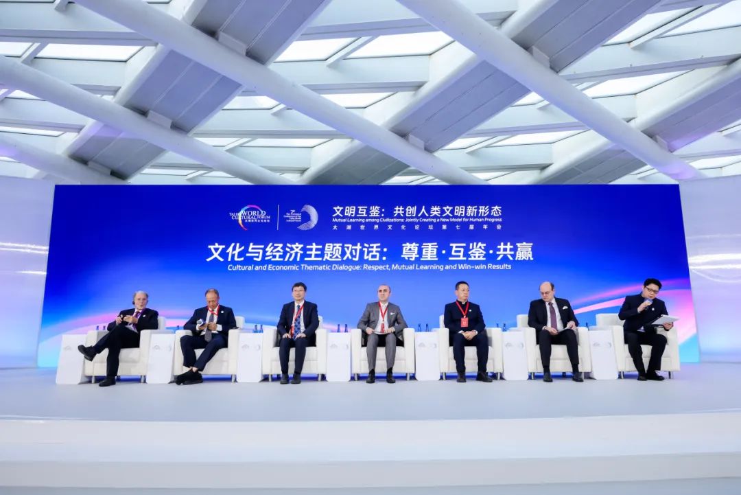 在以“尊重·互鉴·共赢”为主题的文化与经济对话论坛上,太湖世界文化论坛首席战略学家、中国社会工作联合会执行秘书长潘峙钢主持对话;苑天舒副院长以及其他中外嘉宾展开互动交流。