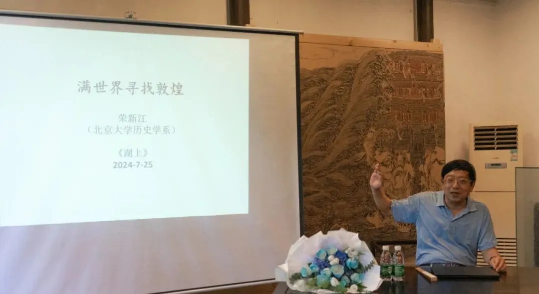 随后,中国文化书院理事、导师,北京大学荣新江教授,率先开讲,用深厚的学术功底和生动的语言,为现场听众勾勒了敦煌及藏经洞的历史轮廓。为什么要满世界寻找敦煌呢?实则是寻找藏经洞分散在各地的文书,以资研究之用。荣教授特别强调了藏经洞文书的全球流散现状及其对于敦煌学研究的重要性,他通过斯坦因、伯希和等探险家的故事,既揭示了文物流失的遗憾,也展现了学术探索的艰辛与魅力。