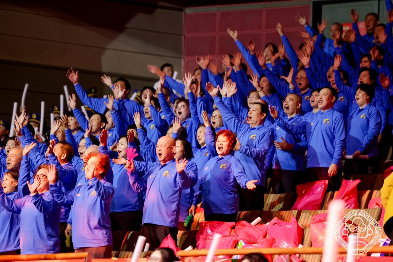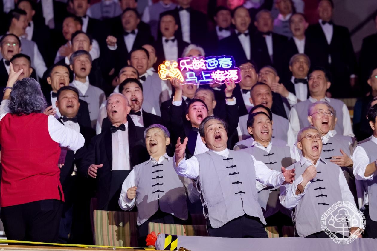 《乐龄春晚》的晚会现场,来自广西、辽宁、山西、湖北、福建等地的老年大学学员们,怀着无比的热情,不远千里、共聚此约。更令人动容的是,由航天老同志、退役军人、退休教师及社区文艺骨干共同组成的13支合唱团,总计1200名合唱队员凝集成磅礴的声浪。他们轮番拉歌,此起彼伏。洪亮而深情的歌声不仅点燃了现场氛围,更唤起了全国直播观众集体最温暖的回忆。