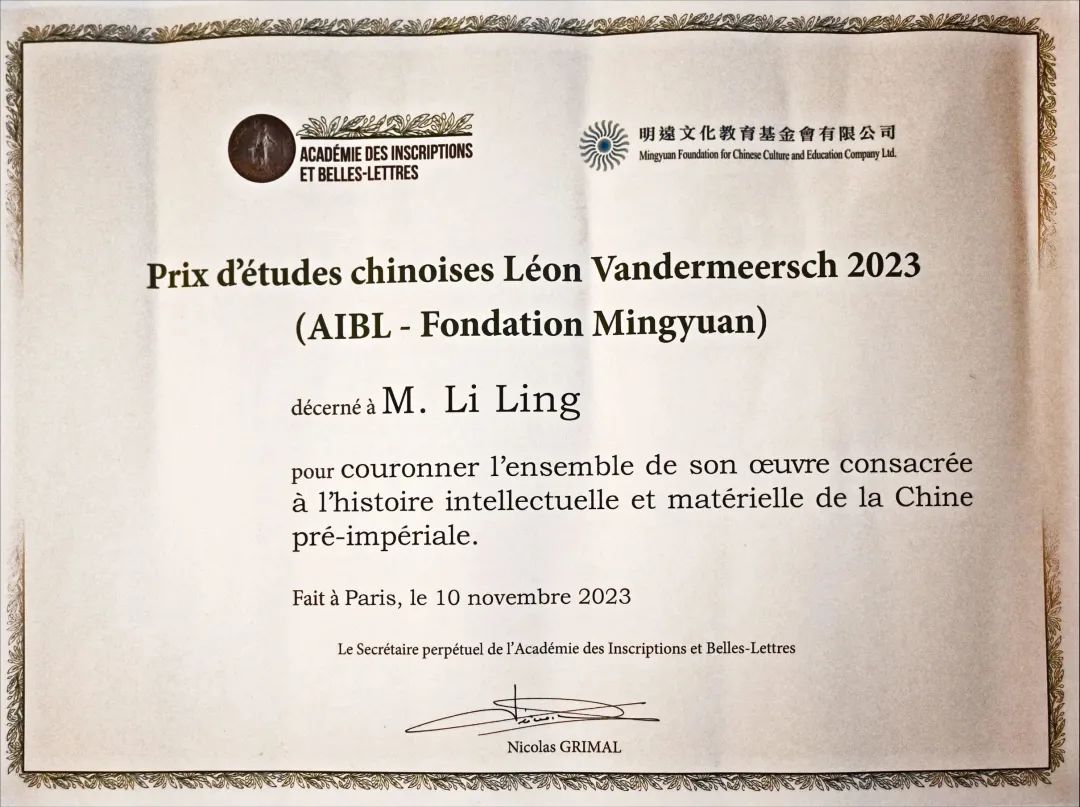 日前,我系教授李零荣获2023年度“汪德迈中国学奖”。该奖项由法国碑铭与美文科学院设立,香港明远基金会支持,以纪念法国汉学家汪德迈(Léon Vandermeersch)生前的杰出贡献。今年五月,法国碑铭与美文科学院与香港明远基金会举行奖项评审会议,决定授予李零2023年度“汪德迈中国学奖”,以表彰李零在中国出土文献、特别是楚系简帛的研究领域的卓越成就,以及在中国古代物质文化研究方面的建树,为学界贡献了诸多富有原创性、创造性的学术成果。