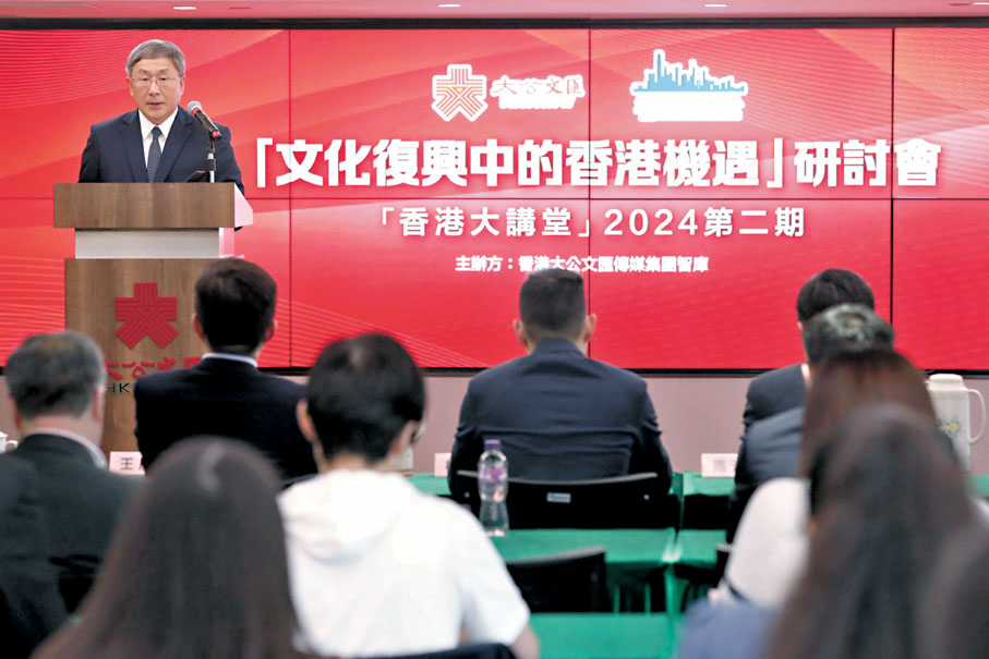 据悉,此次研讨会由香港大公文汇传媒集团智库举办,为多维度地深入发掘香港在粤港澳大湾区担当文化复兴排头兵的机遇、角色和功用;推动香港作为中外文化艺术交流中心的发展,把握文化机遇,焕发文化活力,在服务文化复兴、发展大湾区世界文化中心的道路上,拿出主动性、先行性和引领性。参会嘉宾结合自身的经验与经历,围绕香港应如何在文化复兴中扮演好自身角色、发挥重要作用都提出了专业的建议。现场参会嘉宾还包括香港艺术发展局主席、立法会议员霍启刚,香港大公文汇传媒集团副总编辑王欣之,全国政协委员、英皇电影副主席杨政龙等人。