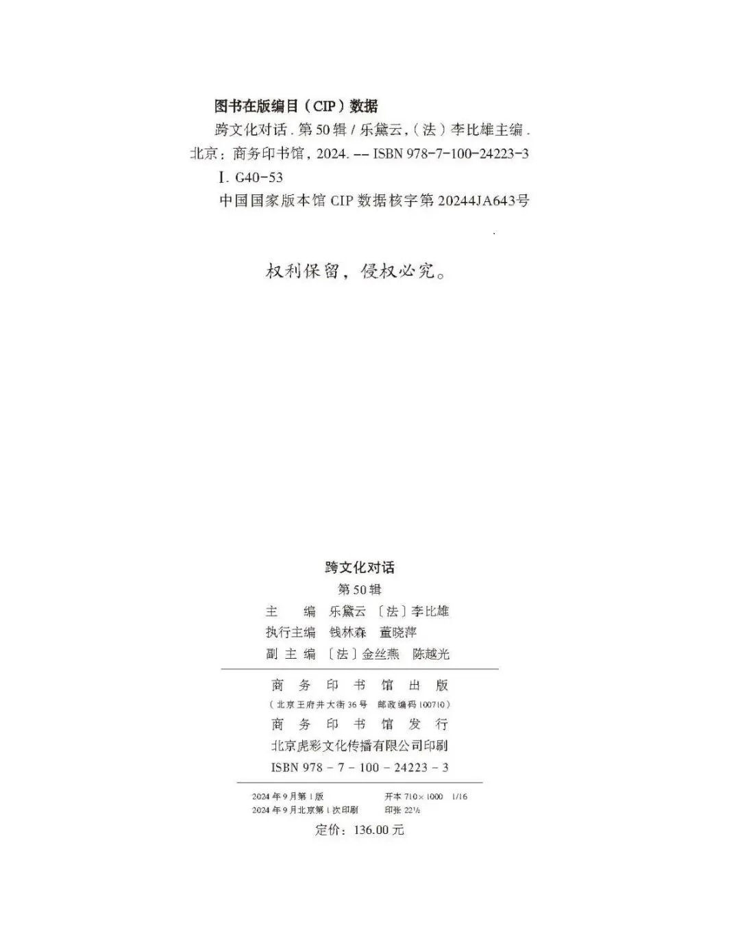 编者按:由中国文化书院跨文化研究分院等跨文化研究机构联合主办的《跨文化对话》第50辑近期出版发行。《跨文化对话》是在中国文化书院四十年发展历程中诞生的一份纯学术期刊。1998年创刊,中法合办,迄今已有26年的历史。半年刊,每年两辑。CSSCI。商务印书馆出版。