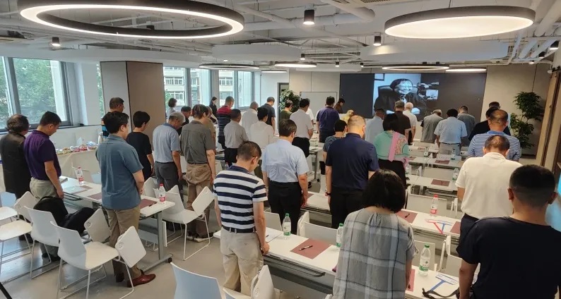 在这相聚时刻,我们深深怀念刚刚去世的书院创院导师、理事,北京大学资深学者乐黛云先生。会场上,大屏幕投放乐先生遗照,全体会员肃立为亲爱的、敬爱的乐先生默哀,表达我们对先生深切的缅怀。