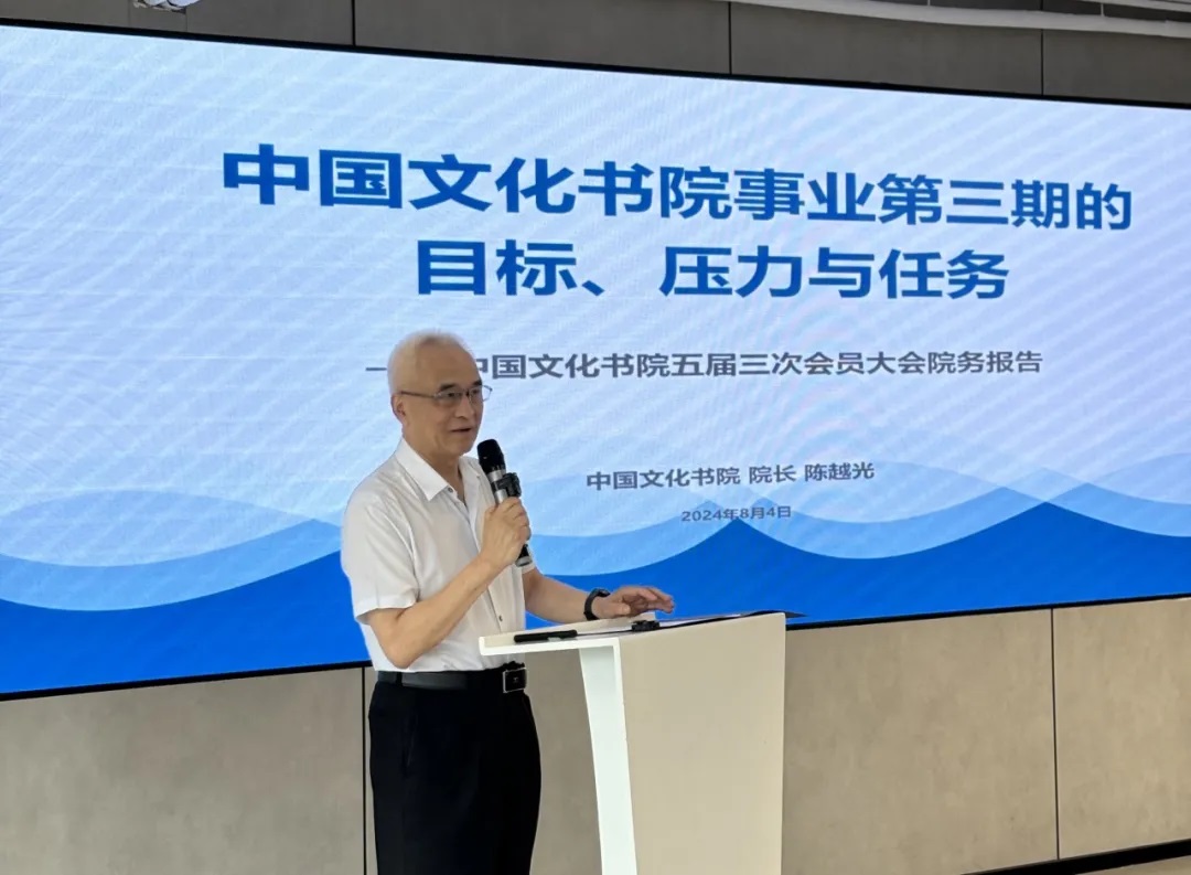 会上,陈越光院长代表第五届理事会做了题为《中国文化书院事业第三期的目标、压力与任务》的院务报告。