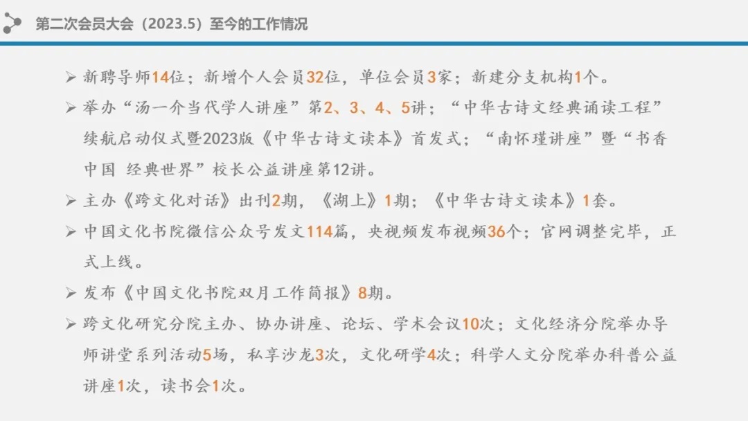 (上图:2023年5月会员大会以来书院的工作情况)