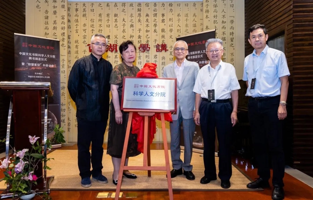 2024年6月8日,中国文化书院科学人文分院聘书颁发仪式暨“仰望星空”科普讲座在杭州孔庙西湖国学馆举行。原中共浙江省委常委、省人大常委会副主任刘力伟,陕西省工信厅原厅长,中和文化研究中心创办人蒋跃,原浙江省政府副秘书长朱绍平、杭州市上城区政协党组成员、副主席范国良,浙江省金融办处长肖凌云,中国文化书院院长陈越光、副院长李林、秘书长佟晓滨、中国文化书院科学人文分院院长、清华大学科学史系主任吴国盛,首都师范大学特聘教授陈嘉映、同济大学人文学院教授张文江、北京大学教授渠敬东、西湖大学教授张卜天,中国美术学院教授林海钟、中国科学院大学人文学院副教授邱慧、上海交通大学安泰经济与管理学院副院长桑大伟等出席了仪式。中国文化书院科学人文分院秘书长李海波主持。