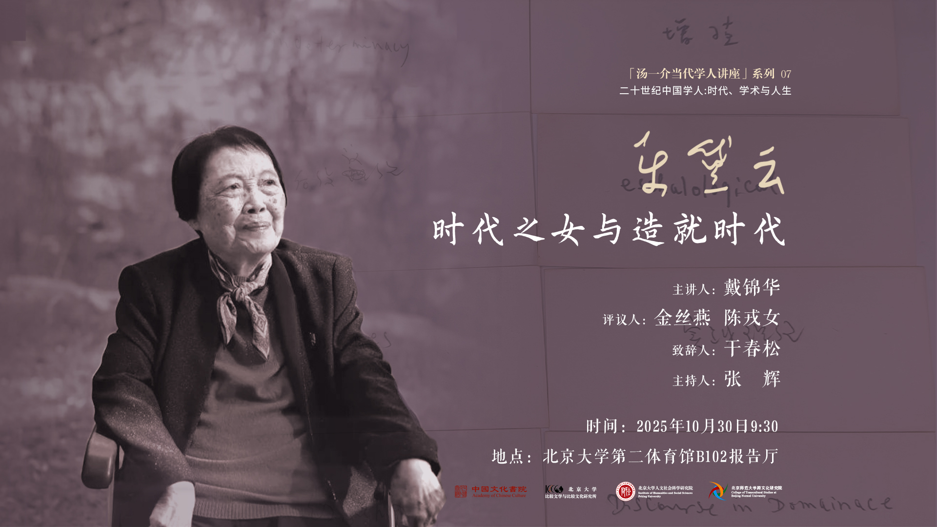 “汤一介当代学人讲座”第七讲在北大开讲,戴锦华主讲“时代之女与造就时代——乐黛云先生的精神遗产”